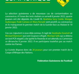 Syli : de nouveaux cas de Covid signalés, 7 joueurs forfaits contre Malawi