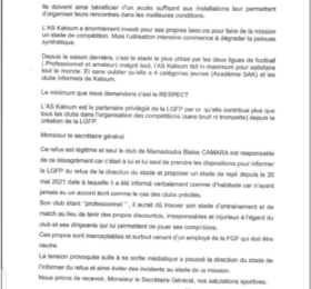 Suite au refus de jouer la rencontre du championnat de la ligue 2, qui devrait opposer le club FC kaloum de Mamadouba Blaise Camara et le...