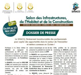 Le salon des infrastructures, de l’habitat et de la construction (SIHACO) sera organisé du 9 au 13 novembre 2021 au Palais du peuple à...