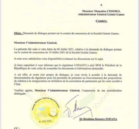 Dans le dossier qui oppose la Lonagui à Guinée Games, le Premier ministre est sorti de son mutisme. Dans une correspondance adressée à...