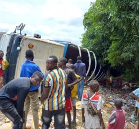 Foussein (Kankan) : un camion remorque rempli de marchandises se renverse avec tout son contenu