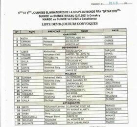 CONAKRY- On connaît désormais la liste des 24 joueurs convoqués pour les deux dernières journées des éliminatoires du mondial 2022 au...