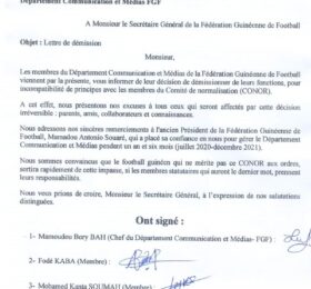 Les membres du Département Communication et Médias de la Fédération Guinéenne de Football (FGF), ont démissionné. Ils l’ont fait...