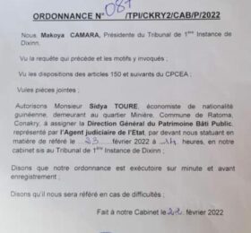 La Cour d’Appel de Conakry,  lors d’un point de presse, co-animé, ce mardi 22 février 2022, par le Procureur Général de la Cour...