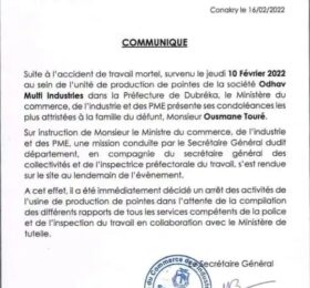 Industrie. Le ministère ferme une usine suite à un accident de travail mortel à Dubréka