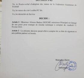 CONAKRY- Dans un court communiqué publié par la direction du club, le Loubha FC de Télimélé annonce la fin de collaboration avec son...