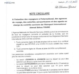 L’Agence nationale de sécurité sanitaire (ANSS) a dans une note circulaire annoncé de nouvelles mesures à l’attention des voyageurs...