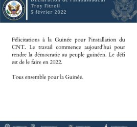 Troy Fitrell, ambasadeur des USA : « félicitations à la Guinée pour l’installation du CNT »