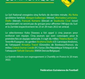 Syli : 5 joueurs déclarés forfaits, 5 nouveaux renforts annoncés