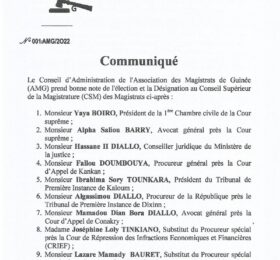 Dans un communiqué dont copie a été transmise à guinee7.com, le Conseil d’Administration (CA) de l’Association des Magistrats de...