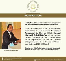 Le Comité d’Organisation de la Coupe d’Afrique des Nations 2025 est recomposé. Lansana Béa Diallo, ministre des sports et de la...