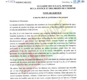 Jamais ministre n’a sévèrement épinglé la Justice guinéenne comme l’a fait le Garde des Sceaux Moriba Alain Koné dans une note...