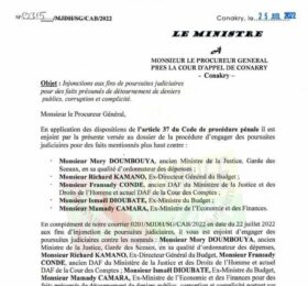 Le ministre de la Justice, garde des Sceaux et des Droits de l’Homme Alphonse Charles Wright a, dans un  courrier dont Mediaguinee...