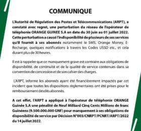 L’ARPT condamne orange Guinée au paiement de plus de 9 milliards GNF