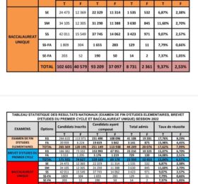 Les résultats du baccalauréat unique session 2022 ont été rendus publics la nuit de ce lundi 18 Juillet 2022. Si le Taux d’admission...