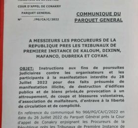L’article Marche non autorisée. Le Parquet général de Conakry demande de poursuivre Foniké Manguè et Cie est apparu en premier sur...