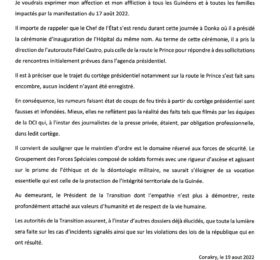 Manifs du FNDC. « Les rumeurs faisant état de coups de feu tirés à partir du cortège présidentiel sont fausses et infondées », dément le Col. Amara