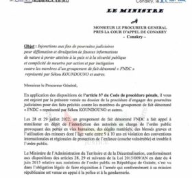 Dans une lettre adressée au procureur général près la cour d’appel de Conakry, le ministre de la Justice et des droits de l’homme,...