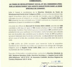 Le fonds de développement social et de l’indigence (FDSI) a dévoilé la liste des demandes pour le recrutement des agents enquêteurs...