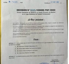 A travers un courrier en date de ce 31 octobre, signé du vice-président du Comité de normalisation de la fédération guinéenne de...