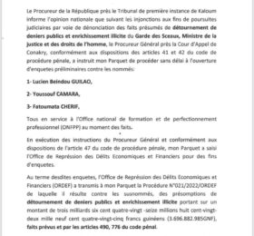 CRIEF. Procédure pénale lancée contre Lucien Guilao, Youssouf Camara et Fatoumata Chérif