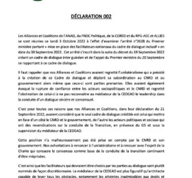 Mise en place des facilitateurs nationaux : Anad, Fndc politique, Cored et Rpg rejettent l’arrêté du Premier ministre
