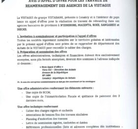 L’article Avis d’appel d’offre pour les travaux de réaménagement des agences de la VISTAGUI est apparu en premier sur...