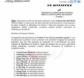 Le ministre de la Justice, Alphonse Charles Wright, a demandé de poursuivre le préfet de Siguiri, Colonel Fodé Soumah et 11 étrangers...