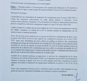 Hafia exhorte la LGFP d’homologuer les matchs de la 24e journée ou reporter son dernier match (courrier)