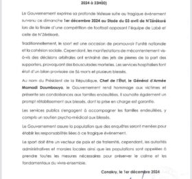 Dans un communiqué publié dans la matinée de ce lundi 2 décembre 2024, le gouvernement guinéen a fait le point de la situation sur les...