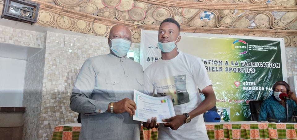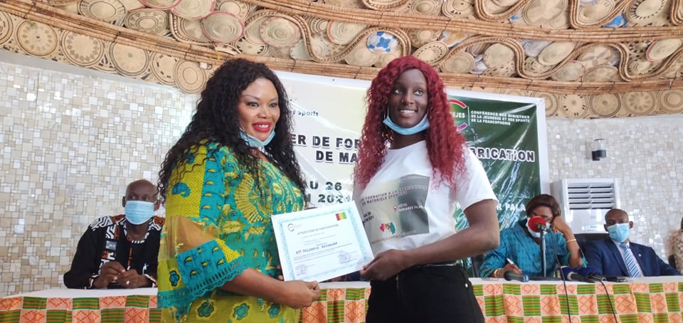 Organisée par le Ministère en charge des Sports à travers le fond d’aide au développement des sports (FADES) en collaboration avec la conférence des ministres de la jeunesse et des sports de la francophonie (CONFEJES), la formation en techniques de fabrication de matériels sportifs a pris fin ce samedi, 26 juin 2021 à Conakry sous la présidence de Mme Bah Fatoumata Conté, cheffe de cabinet du département en charge des sports.