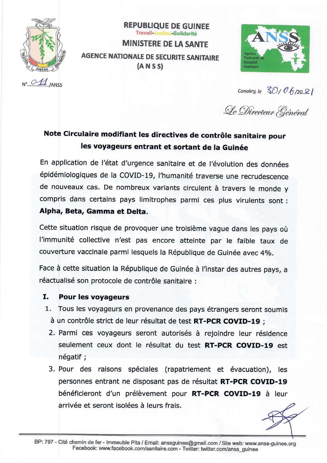 Face à l’évolution épidémiologiques de la Covid-19, la Guinée à travers l’ANSS a durci les mesures d’entrée et de sortie du territoire national