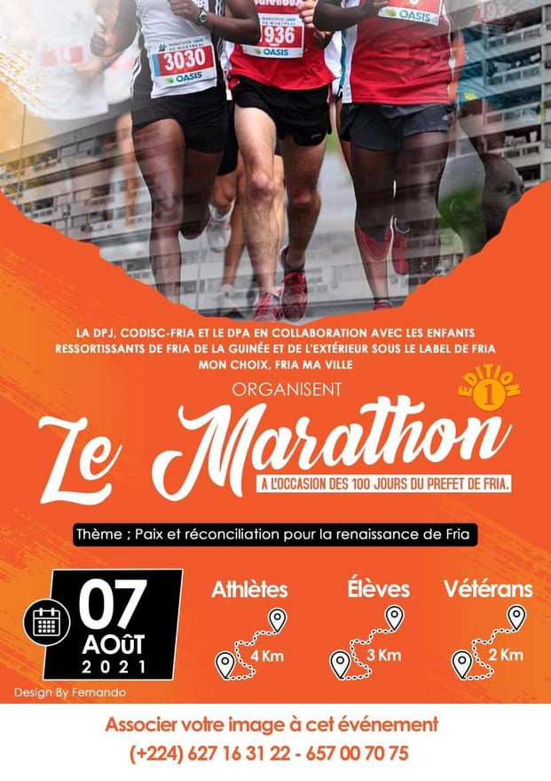Le mouvement « Fria mon choix, Fria ma ville », organise un marathon en collaboration avec le Comité des districts et Clubs sportifs de Fria (CODISC-FRIA), et la Direction préfectorale de la jeunesse, de la culture et du patrimoine historique. Ce marathon, selon les organisateurs, est « la volonté des fils de Fria vivant en Guinée et de la diaspora mais aussi les amis et sympathisants de la ville qui ont lancé un appel pour saluer les 100 jours du nouveau préfet qui a posé les actes de développement de la ville de Fria dès sa prise de fonction ». Pour en savoir davantage, nous avons interrogé M. Mory Condé, président du Comité des districts et Clubs sportifs de Fria et coordinateur général dudit événement.