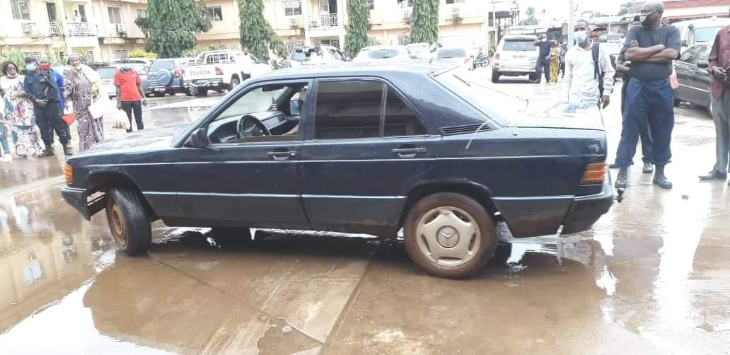 « Il y a environ deux semaines d cela, le nommé Mamadou Tanou Barry a été victime du vol de sa voiture alors qu’il se rendait pour des raisons de famille dans la localité. Il sort de la concession et il trouve que sa voiture a disparu. Donc il est allé au commissariat central de Sonfonia pour porter plainte. Ce qui fut fait et tout de suite la police s’est mise en branle pour mener des enquêtes et deux semaines après voici que la voiture est retrouvée et les auteurs de ce vol ont aussi été retrouvés. Il s’agit d’un certain Mamadou Saliou Barry qui opère en complicité avec un garagiste de la localité du nom de Djibril Bah. C’est ce dernier qui récupère tous les véhicules volés, il change la physionomie, l’état des véhicules en changeant les plaques d’immatriculation, la peinture pour les convoyer en Sierra Leone pour les vendre. Donc la police a pu mettre main sur ces personnes et c’est ce véhicule que nous vous présentons aujourd’hui et les deux individus. Il semblerait qu’ils aient des complices au niveau de la Sierra Leone qui récupèrent lesdits véhicules. Et les enquêtes prouvent qu’ils ne sont pas à leur première opération, donc ce sont des récidivistes qui sont connus pour cela », a expliqué le porte-parole.
