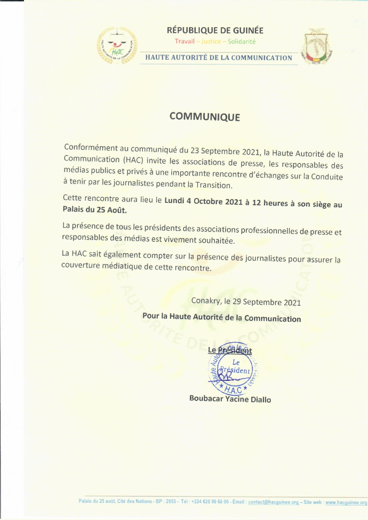 L’article La HAC invite les associations de presse à une rencontre d’échanges, lundi (communiqué) est apparu en premier sur Mediaguinee.org.