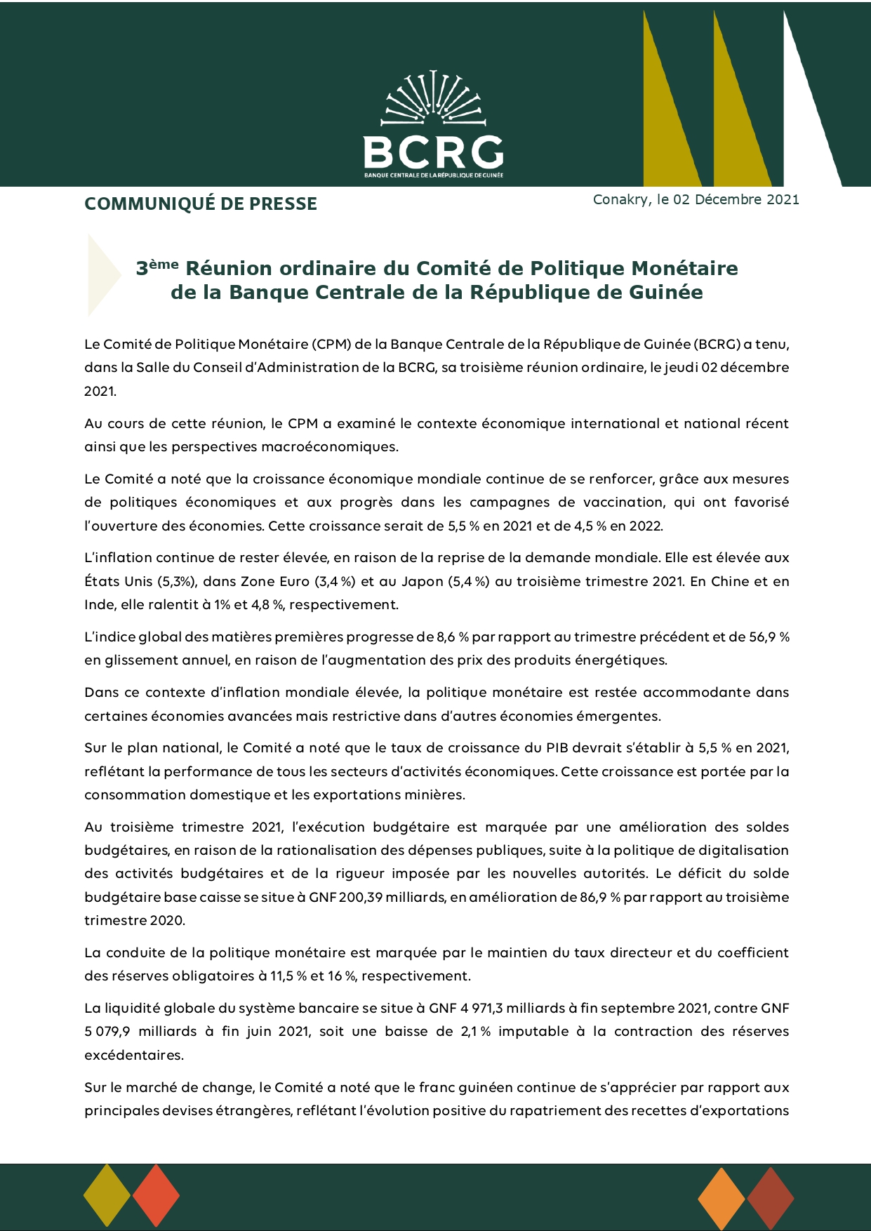 L’article 3è réunion ordinaire du Comité de Politique monétaire de la BCRG (communiqué) est apparu en premier sur Mediaguinee.org.