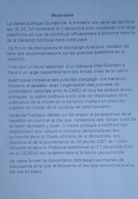 L’article Transition : Les acteurs demandent la mise en place d’un cadre formel de dialogue est apparu en premier sur Guinee7.com.
