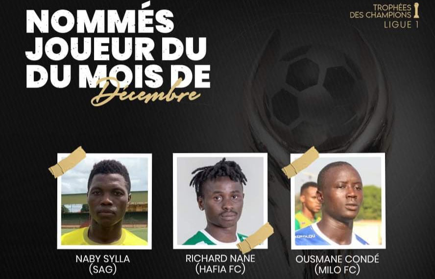 CONAKRY- Après le mois de novembre, les organisateurs des trophées des champions (joueur et coach du mois), viennent de dévoiler les nommés pour le compte du mois de décembre 2021, en championnat de Ligue 1 SALAM.