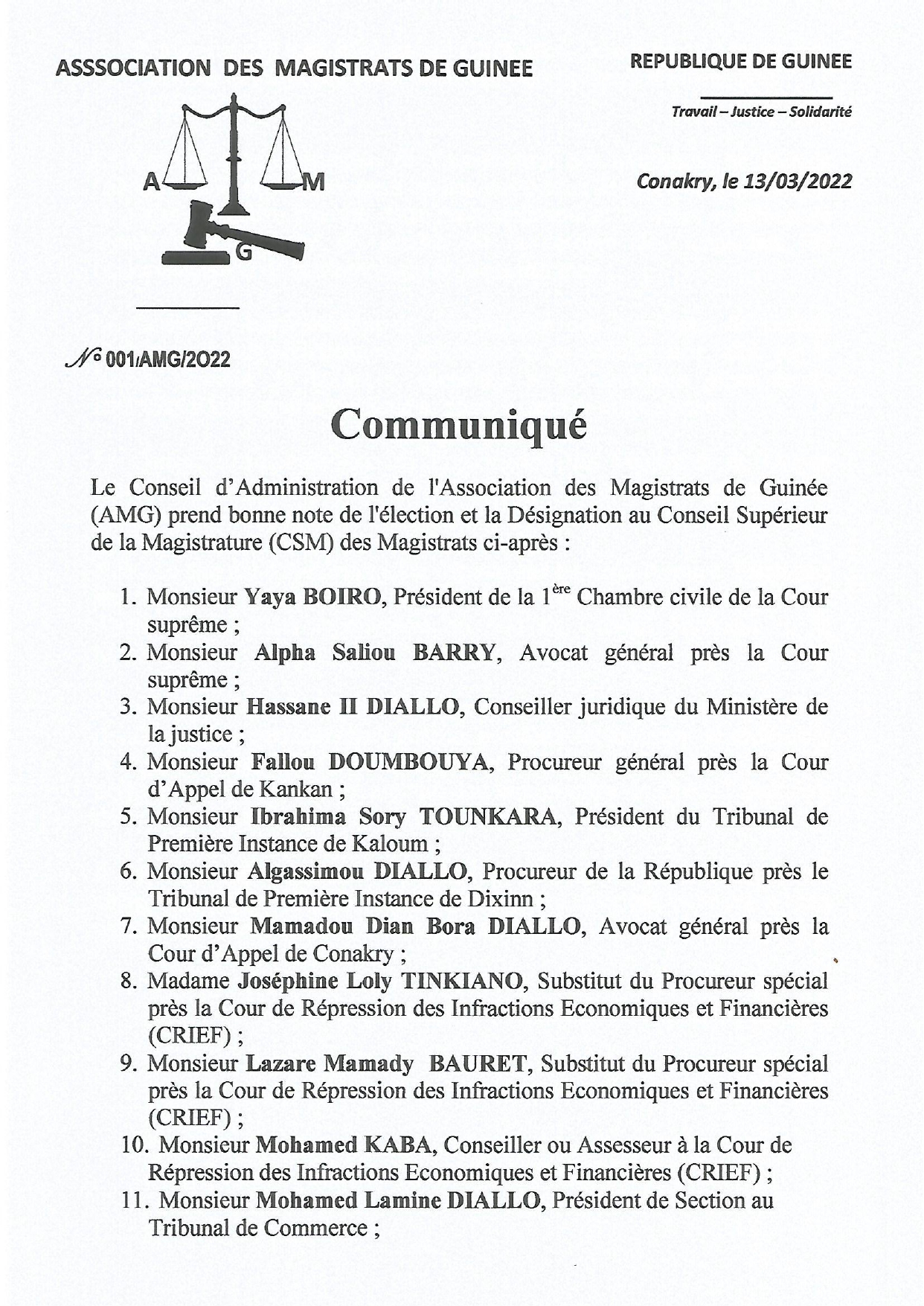 L’article Justice : important communiqué du CA de l’AMG sur le Conseil supérieur de la Magistrature est apparu en premier sur Mediaguinee.org.