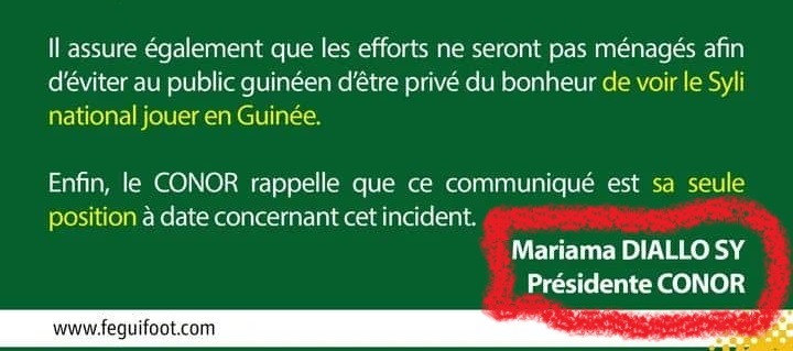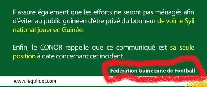 Elle rassure dans son communiqué également que les « efforts ne seront pas ménagés afin d’éviter au public guinéen d’être privé du bonheur de voir le Syli national jouer en Guinée ».