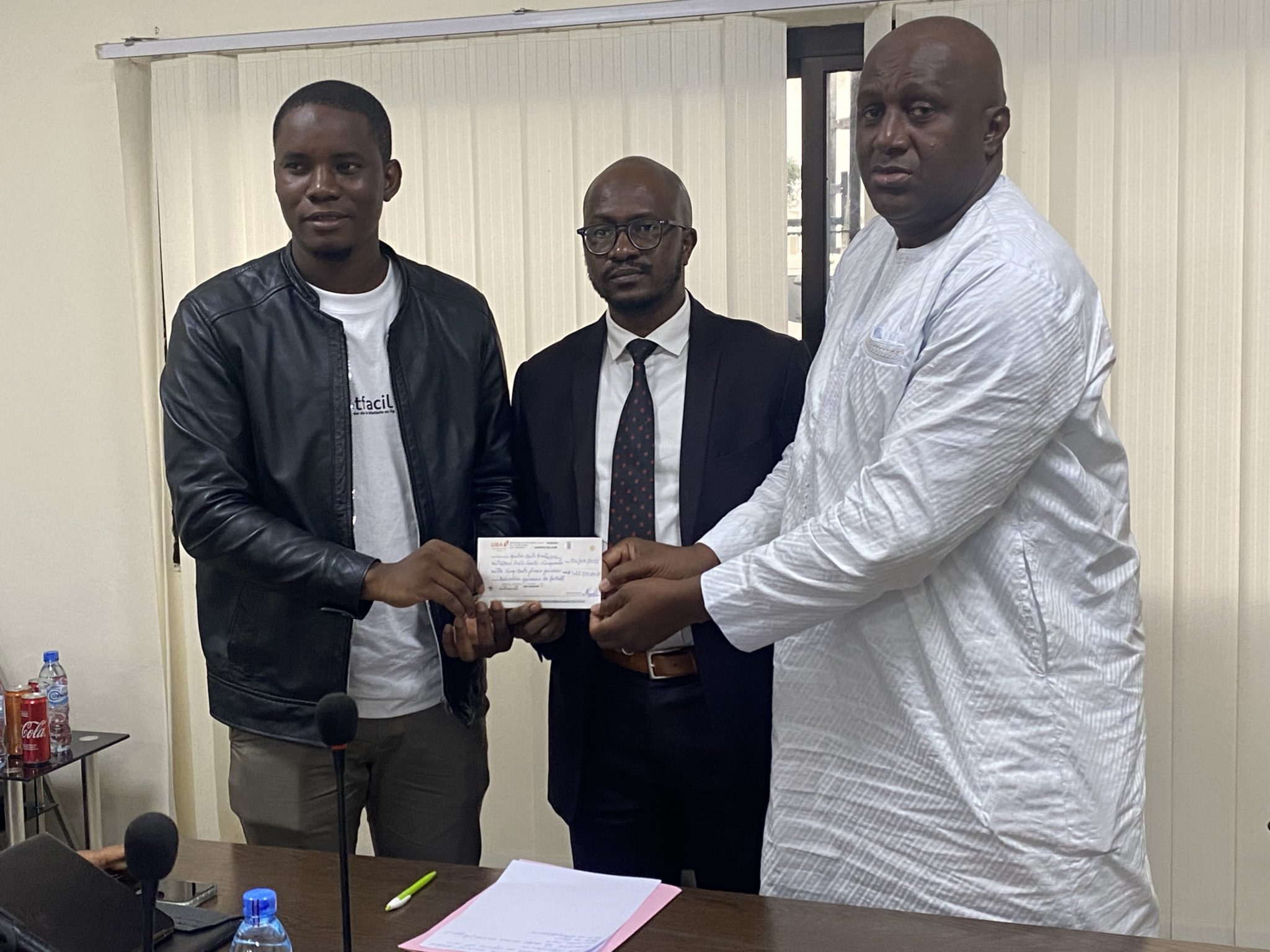 En présence des cadres de la Féguifoot (le secrétaire général et sa suite), le représentant du ministre des sports et certains médias, le rapport détaillé des ventes en ligne et des ventes physiques effectuées a été présenté. Selon le gérant de BilletFacile, c’est un total de 14050 tickets qui ont été vendus au compte de la rencontre du 09 juin dernier au stade de Nongo. Soit pour une recette totale de 493.610.000 de francs guinéens générée. Après soustraction des commissions des entreprises impliquées dans l’opération des ventes, un chèque de 431.350.500 de francs guinéens signé de l’entreprise BilletFacile a été remis cet après-midi à Lansana Kabassan Kéita et à Djibril Kaké, respectivement Secrétaire Général de la Féguifoot et Directeur national adjoint des Sports qui n’ont pas manqué d’exprimer leur satisfaction face au professionnalisme et à l’innovation apportés dans le déroulement du processus des ventes et des contrôles des billets.