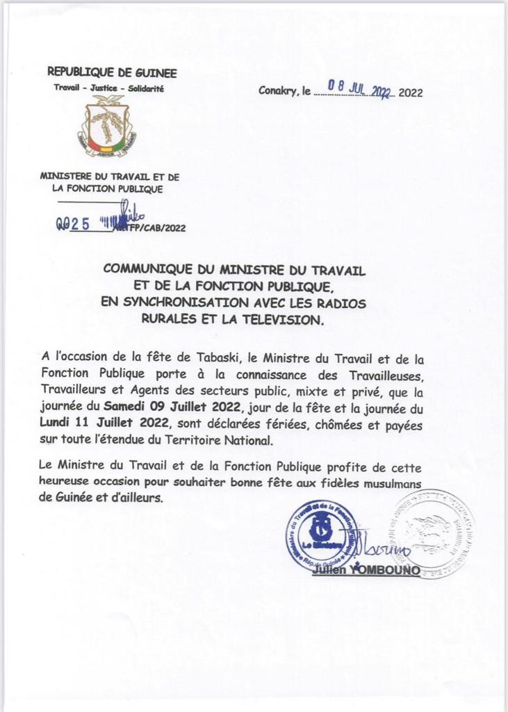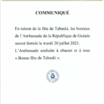 Communiqué : 16/07/2021 – Fête de Tabaski