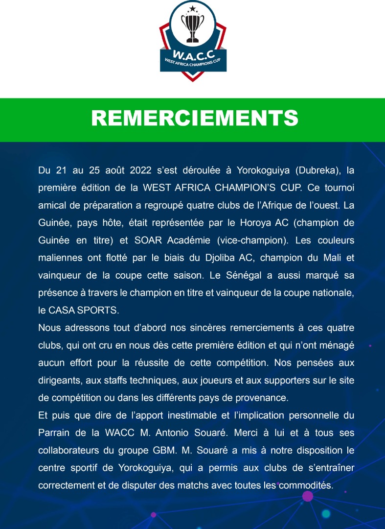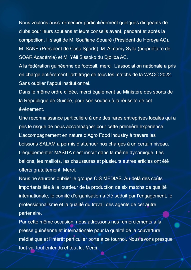 L’article WACC 2022 : Les remerciements de la commission d’organisation est apparu en premier sur Guinee7.com.