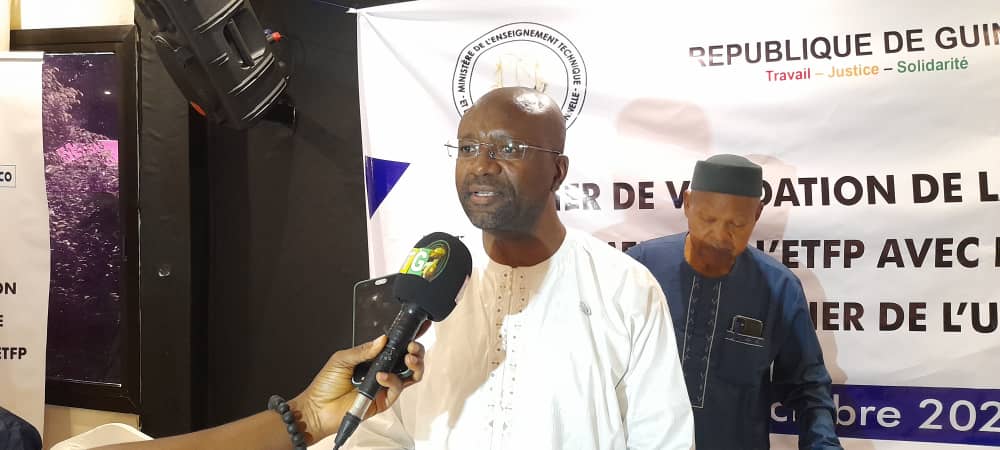 « C’est important pour la Guinée mais aussi les autres pays africains tout simplement parce que les pays africains dont la Guinée aspirent à ce qu’on appelle la transformation structurelle de leurs économies. Ça veut dire qu’ils veulent non seulement se contenter à exploiter et exporter des matières premières brutes mais, de faire de la transformation la première, la deuxième transformation sur ce continent. Et pour faire cette transformation, certes on a besoin d’ingénieurs, de concepteurs mais on a beaucoup plus besoin de plusieurs techniciens et ces techniciens ne peuvent provenir que d’un système d’enseignement technique et de formation bien huilé. Et c’est, ce à quoi nous nous sommes attelés en tant qu’UNESCO. Nous avons travaillé avec les différentes parties prenantes guinéennes pour préparer cette stratégie. La particularité de l’enseignement technique et la formation professionnelle c’est d’être une combinaison d’un système d’enseignement et de formation avec le secteur privé. Parce que nous ne voulons pas non plus former des jeunes guinéens et guinéennes qui vont avoir des diplômes et qui vont se retrouver dans la rue. Donc, il faut travailler de concert avec le secteur privé qui va absorber cette masse de jeunes guinéens et guinéennes qui proviendraient de ce système », a indiqué Dimitri Sanga, directeur régional de l’UNESCO pour l’Afrique de l’ouest.