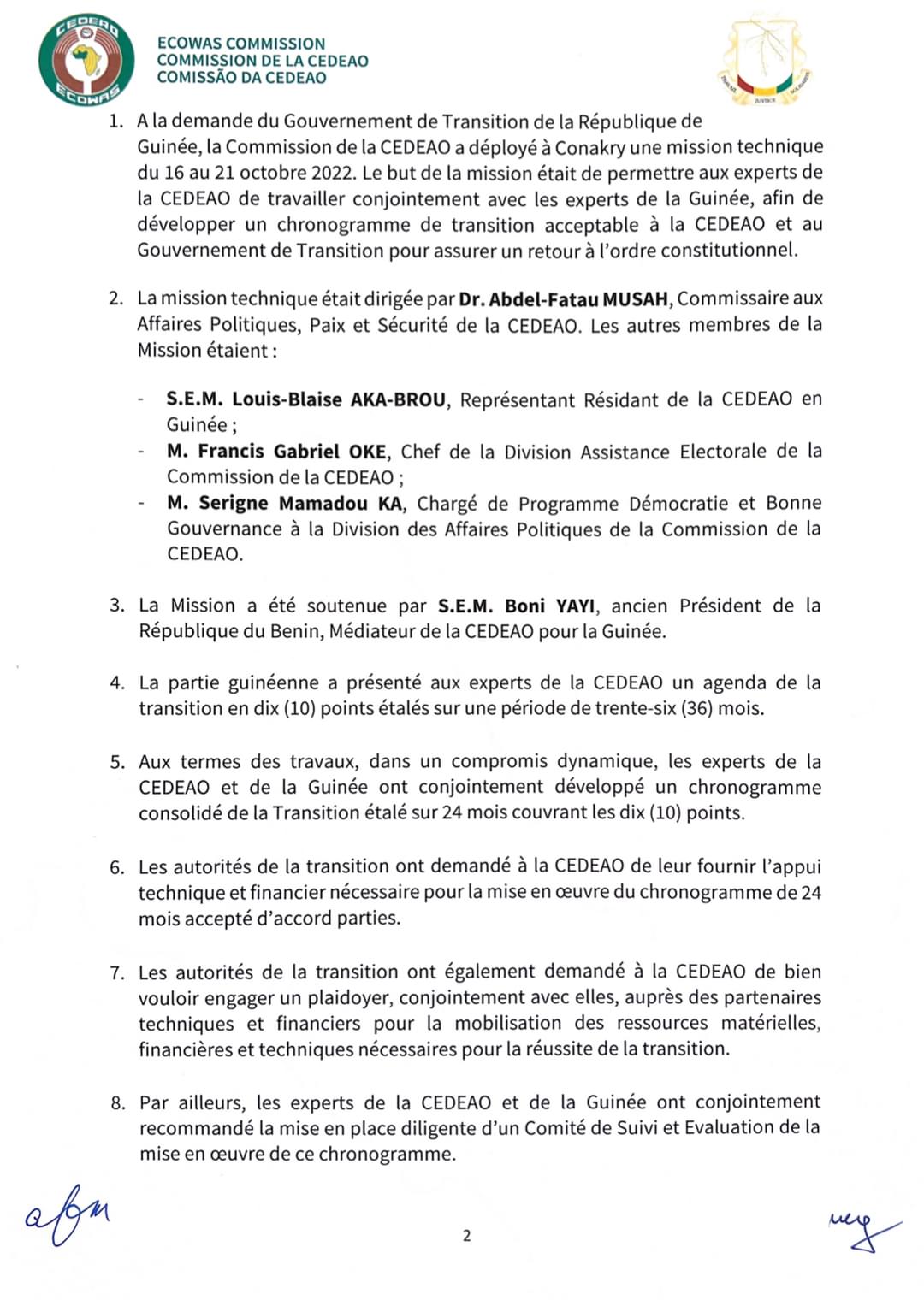 Au palais Mohammed V de Conakry, la Mission technique de la Cedeao a présenté les résultats de ses travaux…