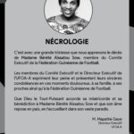 « Le programme des funérailles de feue Madame Aïssatou SOW fera l’objet d’un autre communiqué dès que possible » précise la fédération Guinéenne de Football dans un communiqué