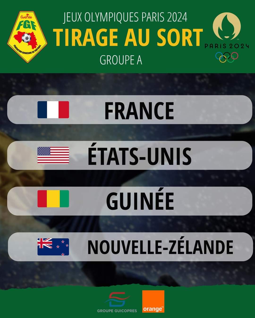 PARIS- Le Syli U-23 connaît déjà ses adversaires pour les Jeux olympiques de Paris 2024. Après sa qualification devant l’Indonésie (1-0) en match de barrage disputé à Paris, la Guinée est située sur les équipes qu’elle ba défier à ce tournoi olympique.