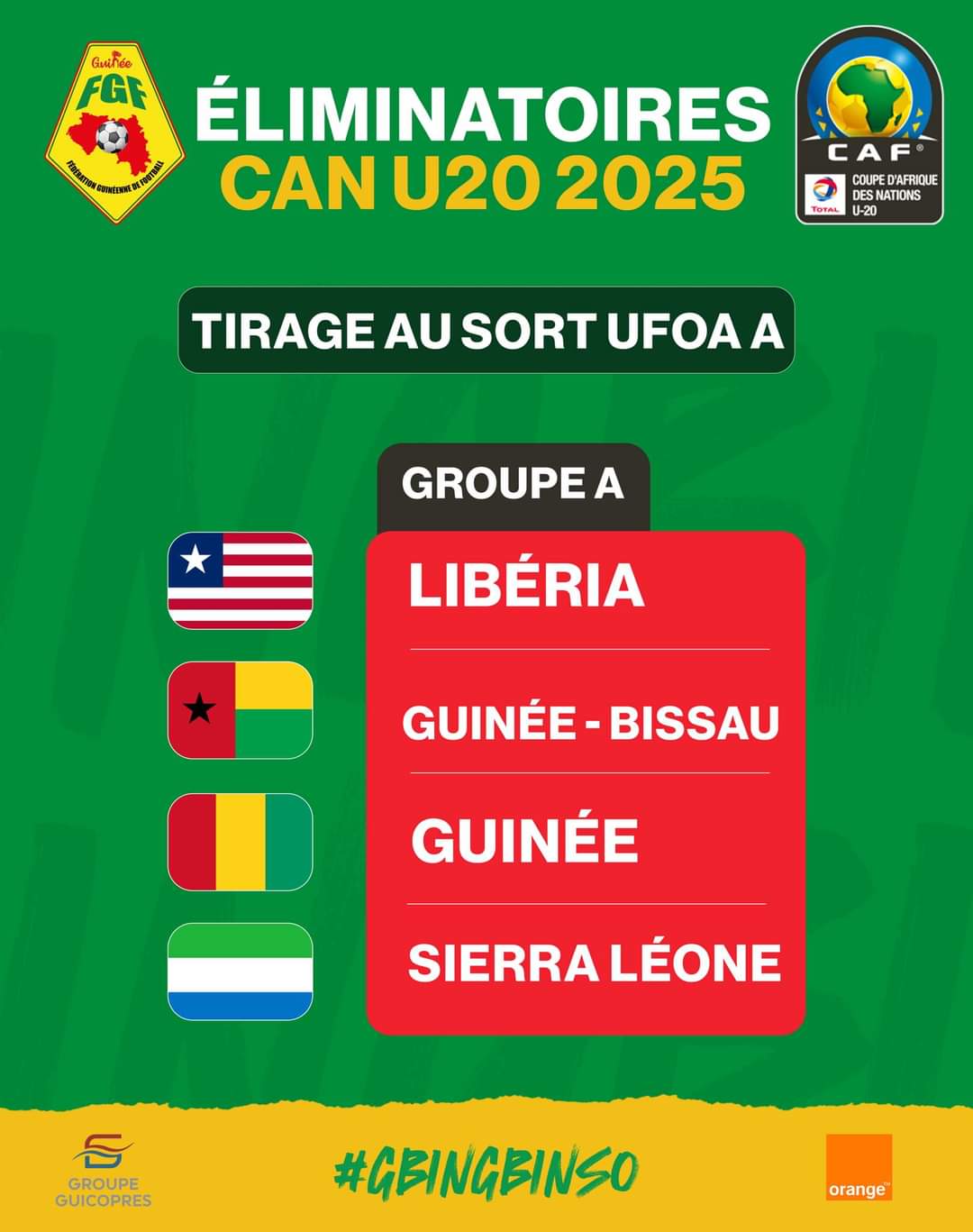 MONROVIA- L’Union des Fédérations Ouest-Africaines de Football (UFOA) U20 a été effectué le tirage au sort des éliminatoires de la CAN U20. La Guinée se retrouve dans la poule A aux côtés du pays hôte Libéria, de la Guinée-Bissau et de la Sierra-Leone.