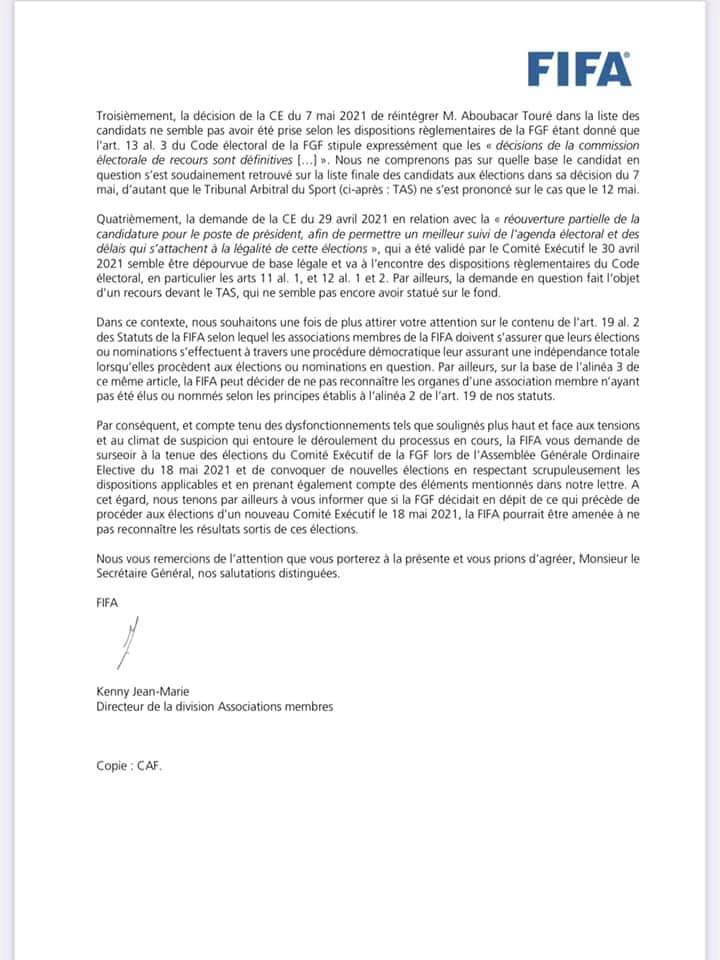 L’article Féguifoot : voici le courrier de la Fifa qui demande de surseoir aux élections du COMEX… est apparu en premier sur Mediaguinee.org.