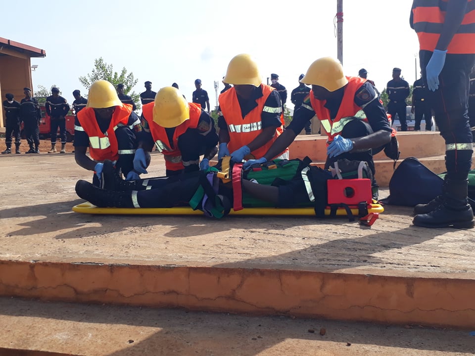 Une simulation d’extinction d’incendie et de secours à un victime d’un accident de la circulation ont marqué la fin de la journée portes ouvertes au SIS de Ratoma.